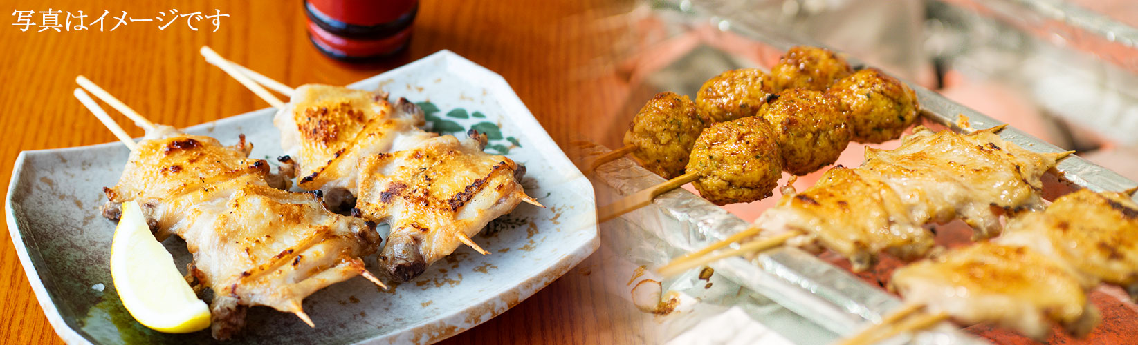 - 串焼き盛合せ(つくね、手羽先、ハツ、ソリレス、椎茸、ネギ)